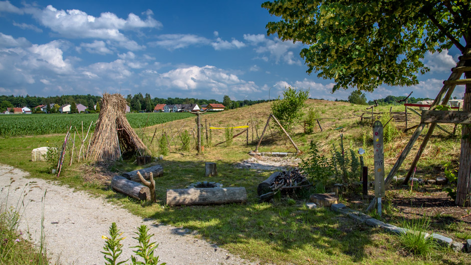 Im Außenbereich befinden sich ein liebevoll angelegter Naturgarten, sowie ein Vorplatz, eine Terrasse und unser Wikingerdorf. Ebenso nutzen wir die ländliche Umgebung und den angrenzenden Wald als Spiel – und Erlebnisfeld.